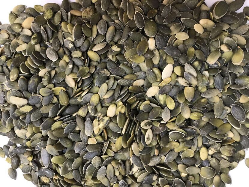 Raw pumpkin seeds soaked in water, and then baked until golden yellow, can be used to cook, recently also used in cakes, pasta class.